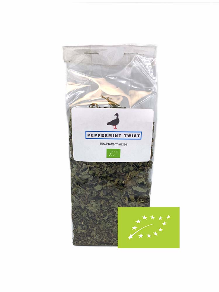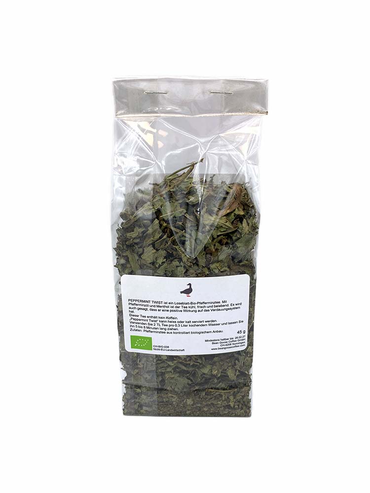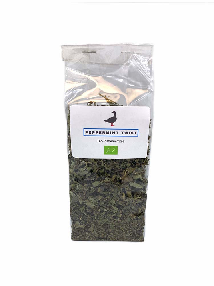 PEPPERMINT TWIST is a loose-leaf organic peppermint tea. With peppermint oil and menthol, the tea is cool, fresh and invigorating. It is also thought to have a beneficial effect on the digestive system.